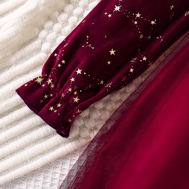 Girls’ Dress Spring Autumn Fashionable Children’s Princess Dress with Star Print Velvet Dress